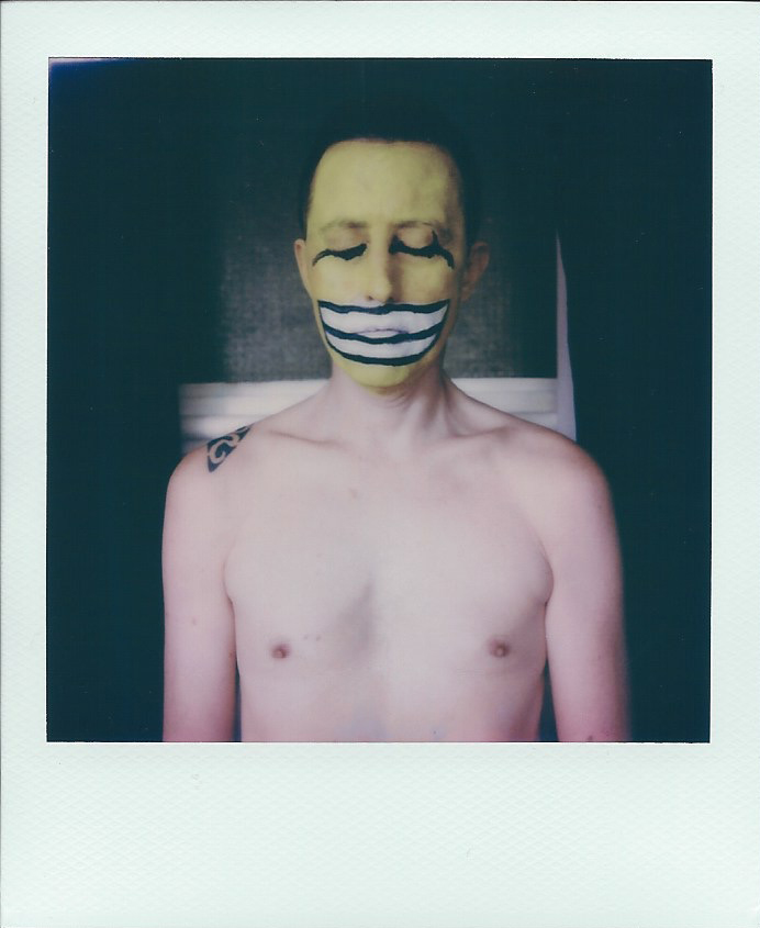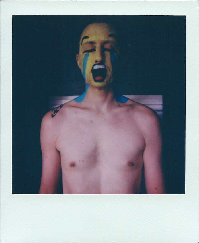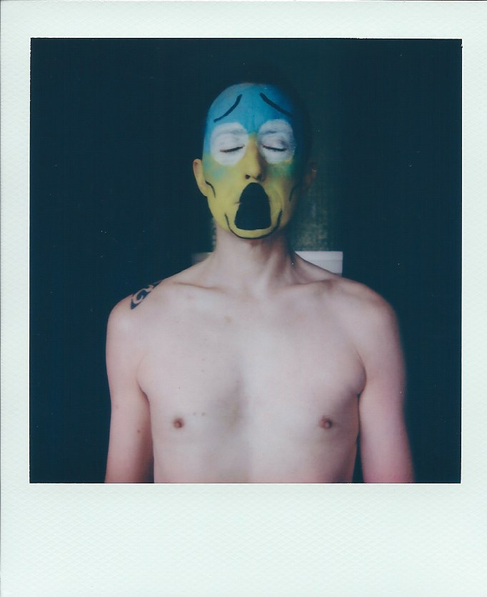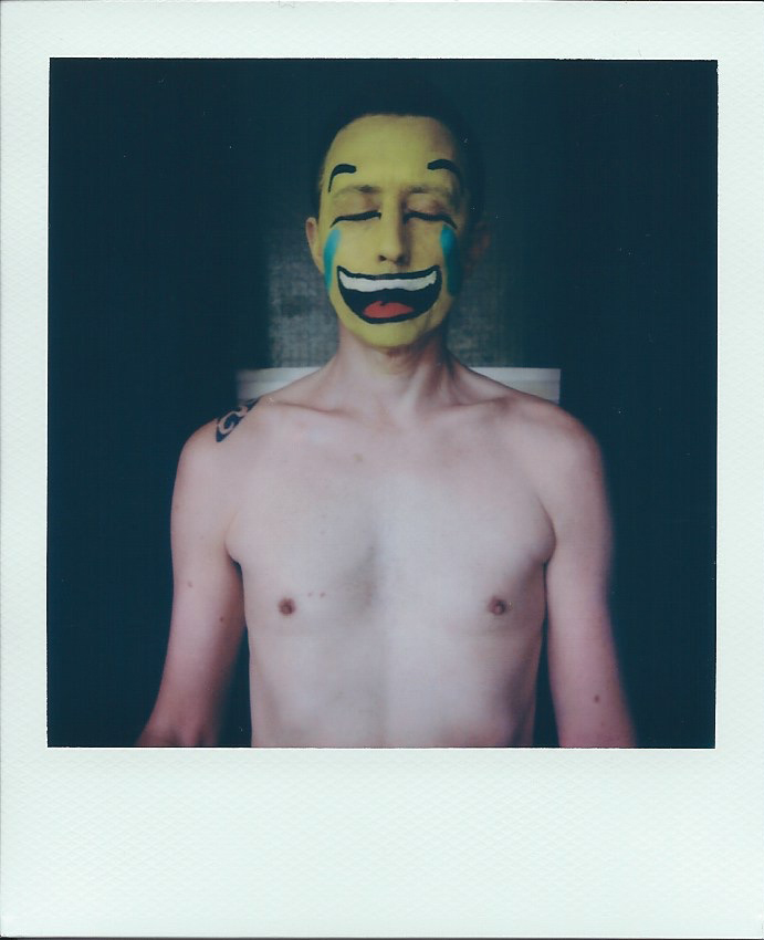 Emojis are synonymous with social media and types of modern communication. I considered these as a representation of connections between people, as well as their use as visual language. Painted on my face like a clown they reveal other emotions behind the mask. This is intended to question whether these artificial, often very superficial connections, through social media and the virtual world in general, are dehumanising. There is at least a strong case for de-individuation through these generic forms of language. Paradoxically, I am reclaiming some appearance of individuality by merging my face with specific emojis, yet becoming de-individuated by effectively adorning a mask, obscuring my identity. People select emojis to express how they are feeling, or in order to elicit an emotional response to something. These are fixed and standardised though. They may be masking other emotions or states of mind. This may be true in the real world, as well as the virtual. I just wonder whether it is amplified further in the latter, particularly within the framework of social media. So, are we becoming less social in real terms? I also wanted to express a depth and range of emotions, not explicit or exclusive to a fixed visual marker selected from a limited range of options. These Polaroids link the digital and the pre-digital, while also pointing towards a technology which garnered a fascination with the instant image.